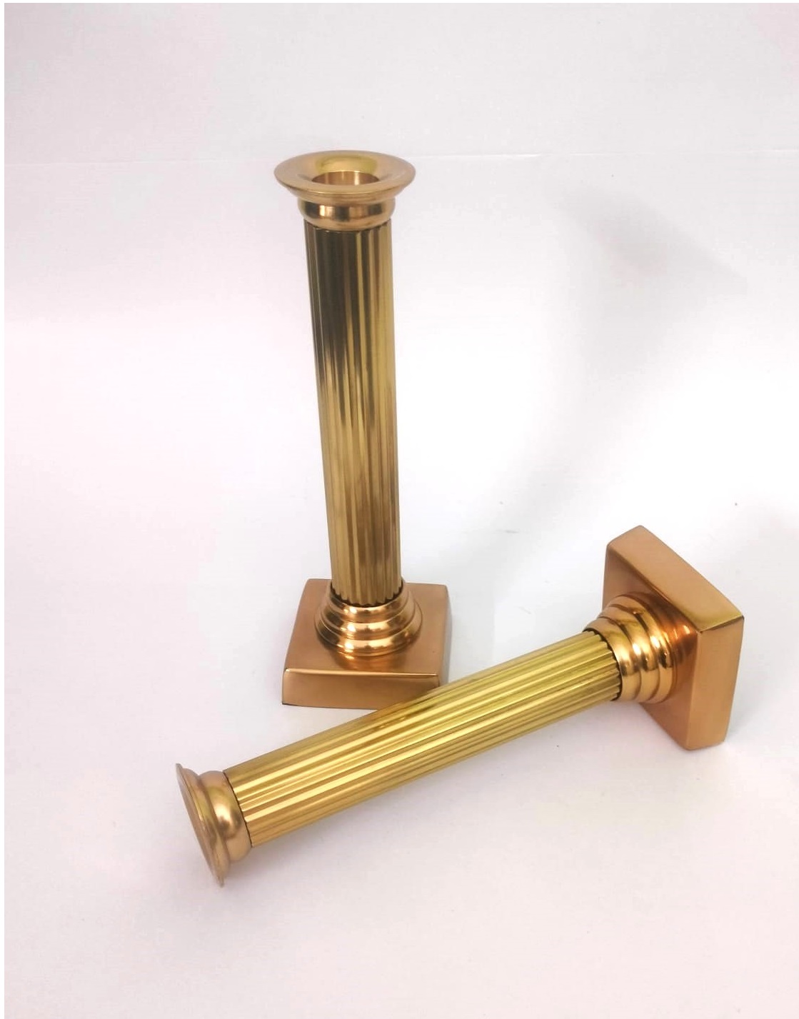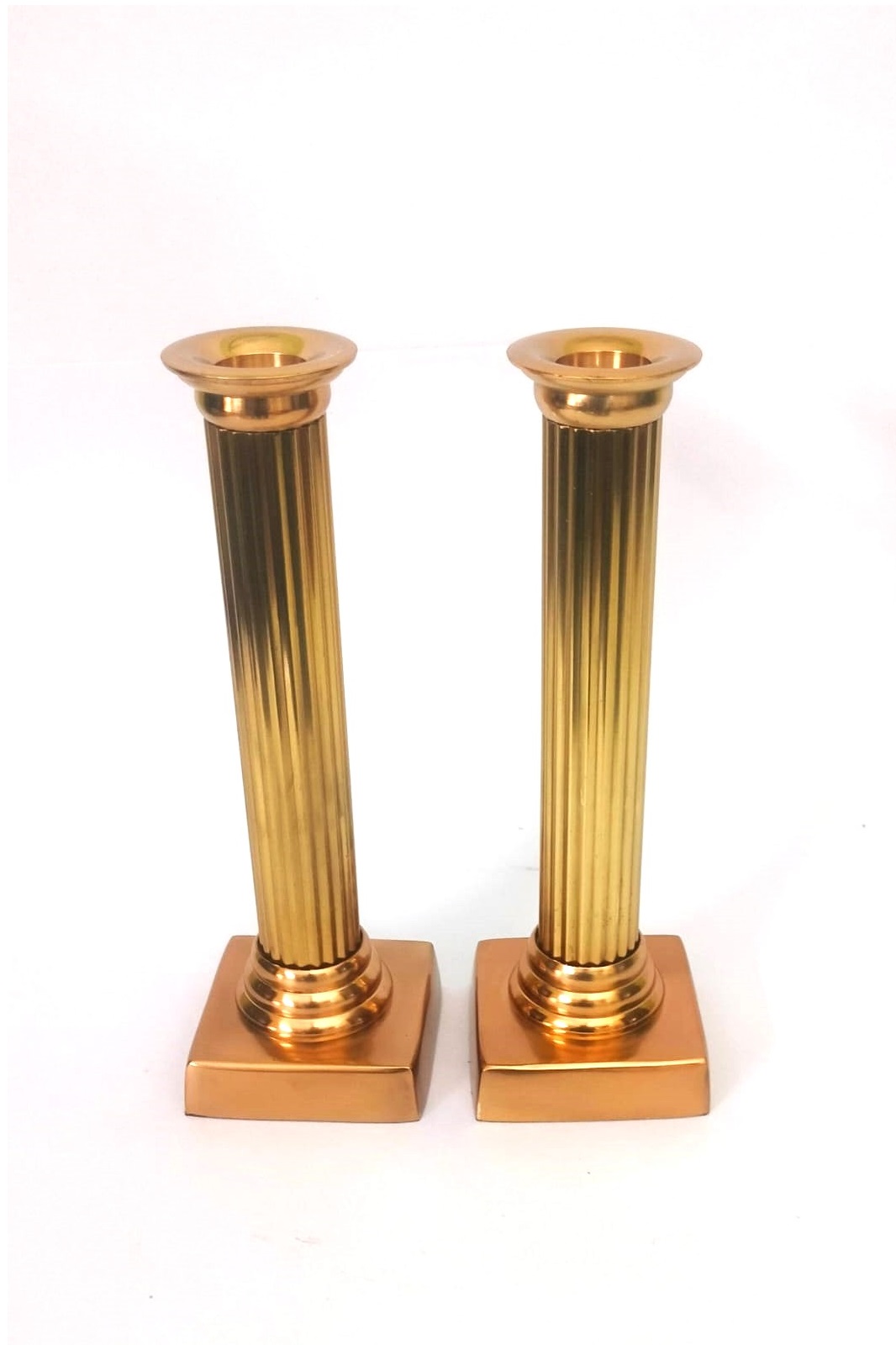 Handcrafted Brass candle holder- pair ornate Roman Iconic pillar pattern
